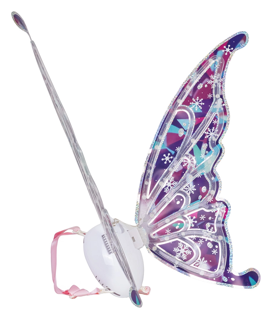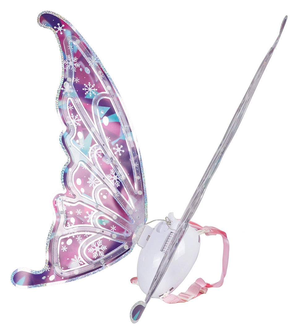 Zauberhafte Flügel verwandeln Ihr Kind im Handumdrehen in eine Fee oder einen Schmetterling. Die sorgfältige Verarbeitung und das sanft transparente Design mit glitzernden Motiven sorgen dafür, dass es ein Hingucker ist. Integrierte Lichteffekte, Klang und realistisches Flattern der Flügel schaffen einzigartigen, interaktiven Spielspaß.