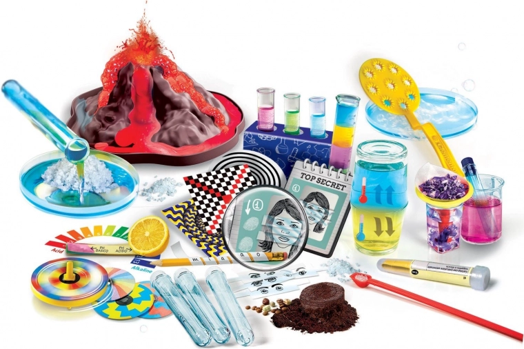 Im Paket findet sich eine breite Auswahl an Laborzubehör – Reagenzgläser, Ständer, Messbecher, Hilfsmittel für Optik-Experimente und ein Vulkanmodell. Zudem sind übersichtliche Karten/eine illustrierte Anleitung enthalten, die Kinder Schritt für Schritt führen und sie in Genauigkeit und Geduld schulen. Ideal für das Lernen zu Hause und für gemeinsamen Spaß mit den Eltern.