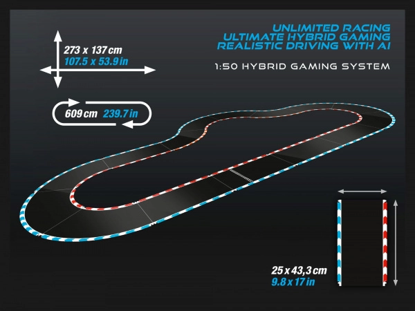Die Zusammenstellung umfasst 2 Fahrzeuge Porsche 911 GT3, Geraden, Kurven und ein START/ZIEL-Teil. Die Bahn ist leicht auf- und abzubauen, 25 cm breit und ermöglicht Überholmanöver auf Geraden und in Kurven, auch abseits der Strecke mit der BOOST-Funktion. Dank hochwertiger Verarbeitung eignet sich das Set für anspruchsvolle Spieler und Einsteiger ab 12 Jahren.