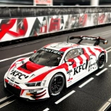 Tauchen Sie ein in die Welt realistischer Rennen mit dem eleganten Audi R8 LMS GT3 evo II für Carrera Digital 132. Die detailreiche Ausführung, eine zuverlässige Leitkiel-Führung und ein starker Magnet sorgen für eine ruhige Fahrt und hohe Stabilität selbst in anspruchsvollen Kurven. Dank der funktionierenden Beleuchtung genießen Sie Rennspaß auch bei gedimmtem Licht.