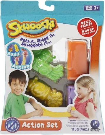 Die Skwooshi-Knetmasse ist sauber in der Anwendung, färbt nicht ab und trocknet nie aus – ideal für kreatives Spielen zu Hause und im Kindergarten.