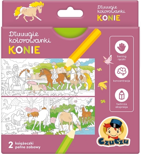 Dieses originelle Set von CZUCZU führt Kinder in die Welt der Pferde und des Lebens im Stall. Auf der einen Seite warten großformatige Ausmalbilder, auf der anderen altersgerechte Aufgaben und Rätsel für Vorschulkinder. Die Illustrationen sind voller Humor und Details und fördern Fantasie und Konzentration.