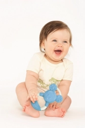 Die strukturierte Oberfläche unterstützt das sensorische Wahrnehmen und die Entwicklung der Feinmotorik. Die ergonomische Form mit sicherem Griff motiviert das Kind zum selbstständigen Halten und sicheren Entdecken.