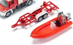 Erweitern Sie Ihre Sammlung um das realistische Modell SIKU Super – Feuerwehrfahrzeug UNIMOG mit Anhänger und Spezialboot mit Leiter. Die Kombination aus Metall und Kunststoff gewährleistet hohe Stabilität, während die Gummireifen eine ruhige und leise Fahrt auf verschiedenen Oberflächen bieten. Eine großartige Wahl für Technikfans, Feuerwehrbegeisterte und kleine Helden.