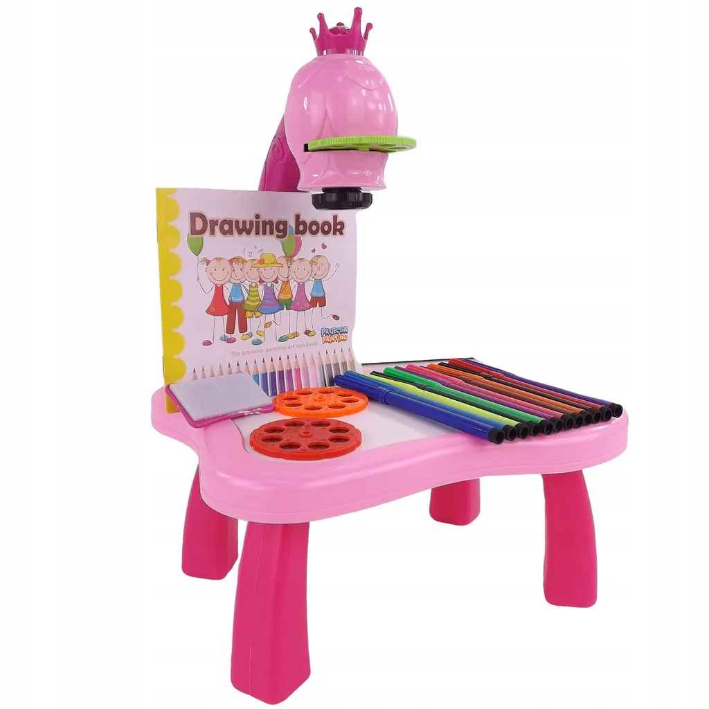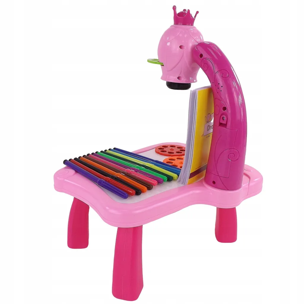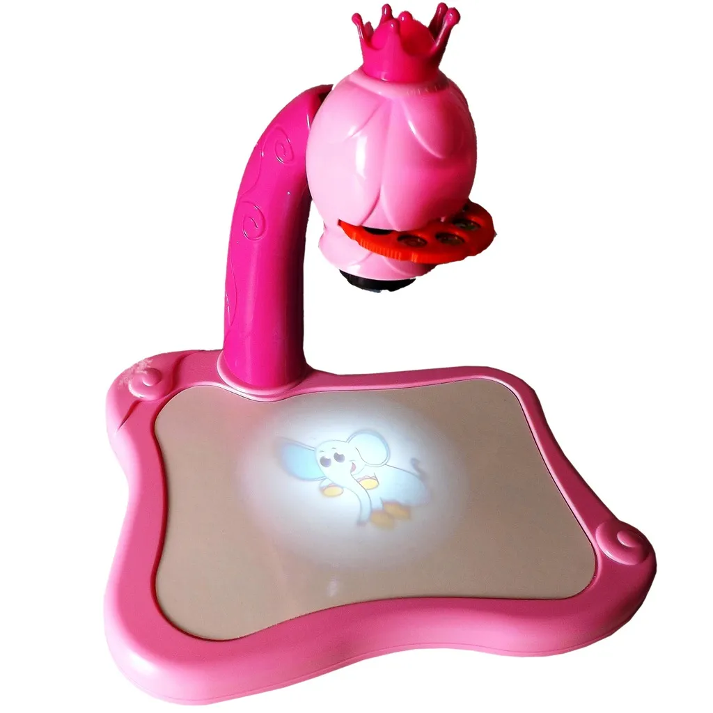 Entdecken Sie eine spielerische Art, Kindern das Zeichnen beizubringen. Der Kinderprojektor mit Krone projiziert helle Bilder direkt auf die Zeichenfläche, damit sie diese leicht nachzeichnen und ausmalen können. Die lebendige rosa Farbe lädt zum Spielen ein, während die Schärfeeinstellung ein klares, gut lesbares Bild gewährleistet.
