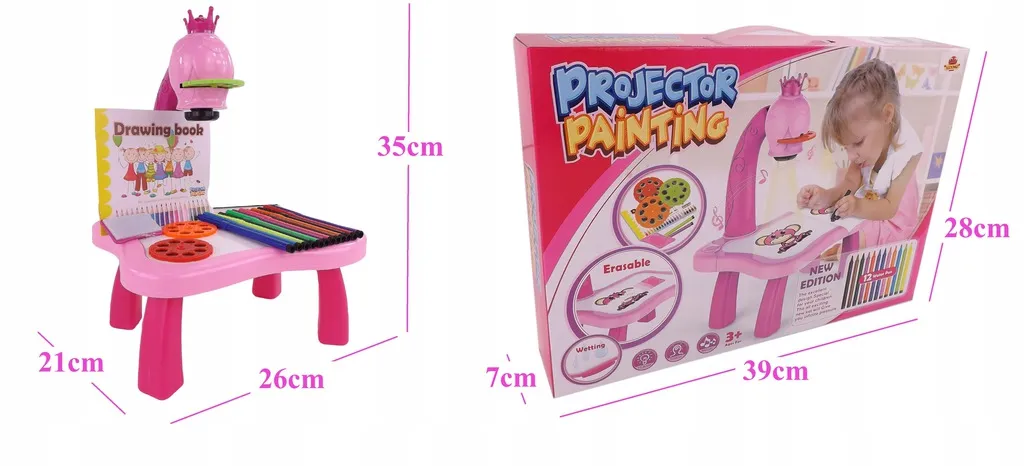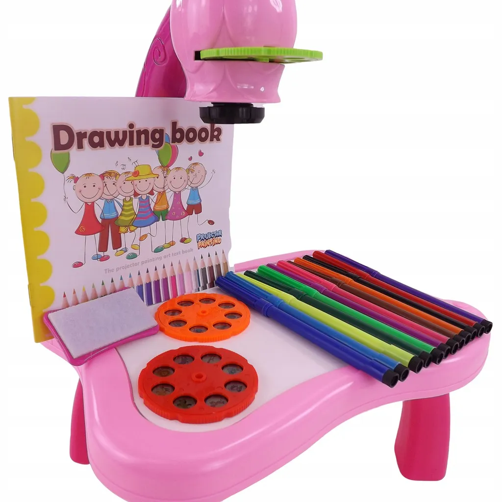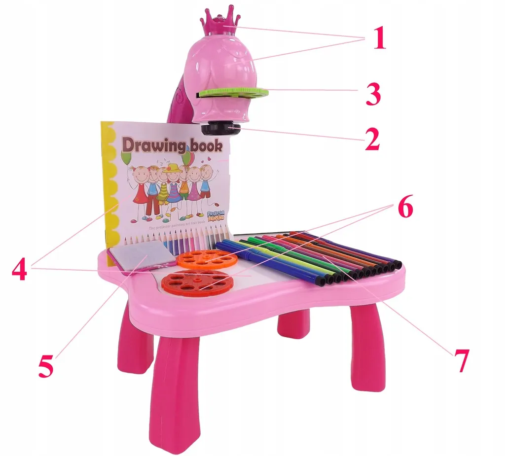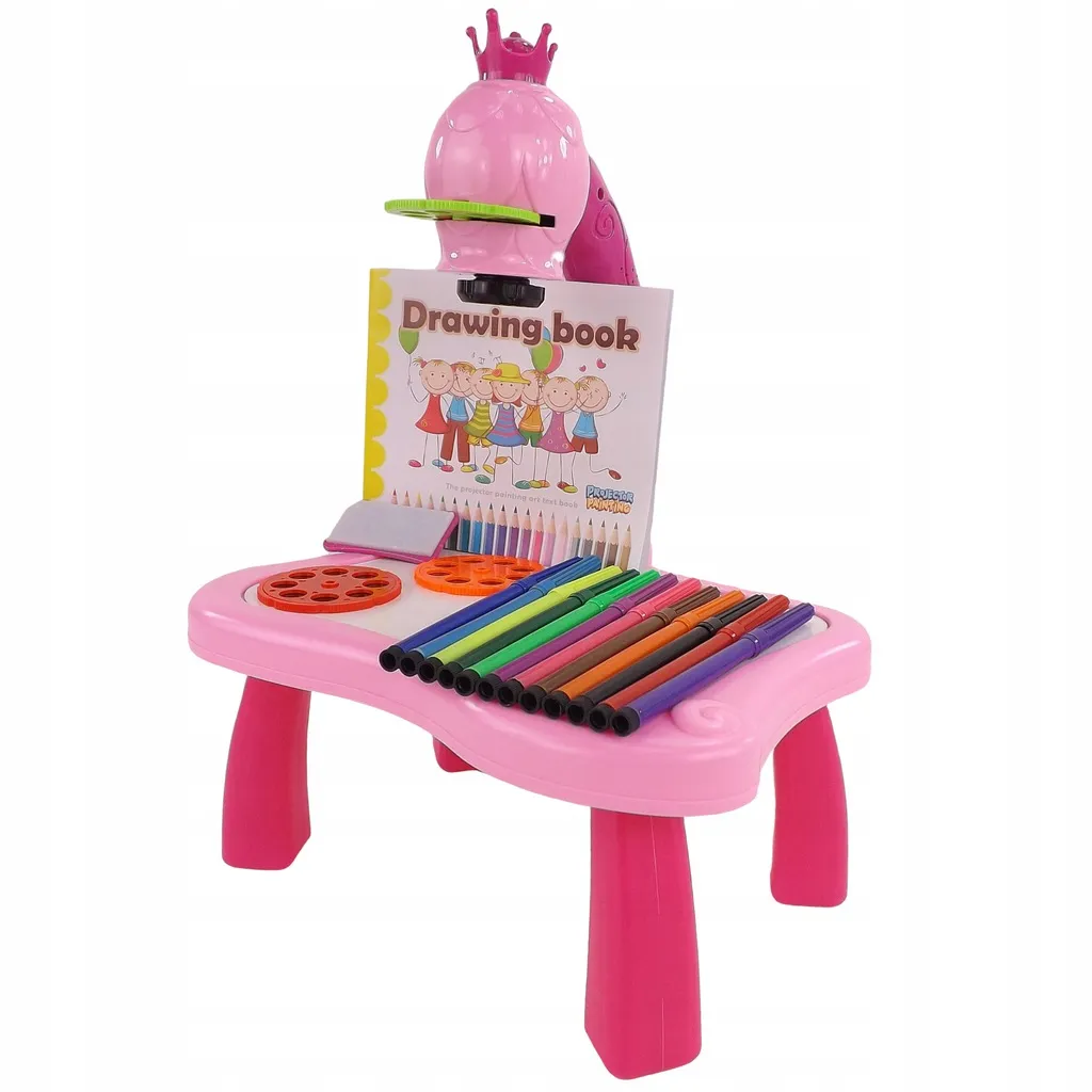 Entdecken Sie eine spielerische Art, Kindern das Zeichnen beizubringen. Der Kinderprojektor mit Krone projiziert helle Bilder direkt auf die Zeichenfläche, damit sie diese leicht nachzeichnen und ausmalen können. Die lebendige rosa Farbe lädt zum Spielen ein, während die Schärfeeinstellung ein klares, gut lesbares Bild gewährleistet.