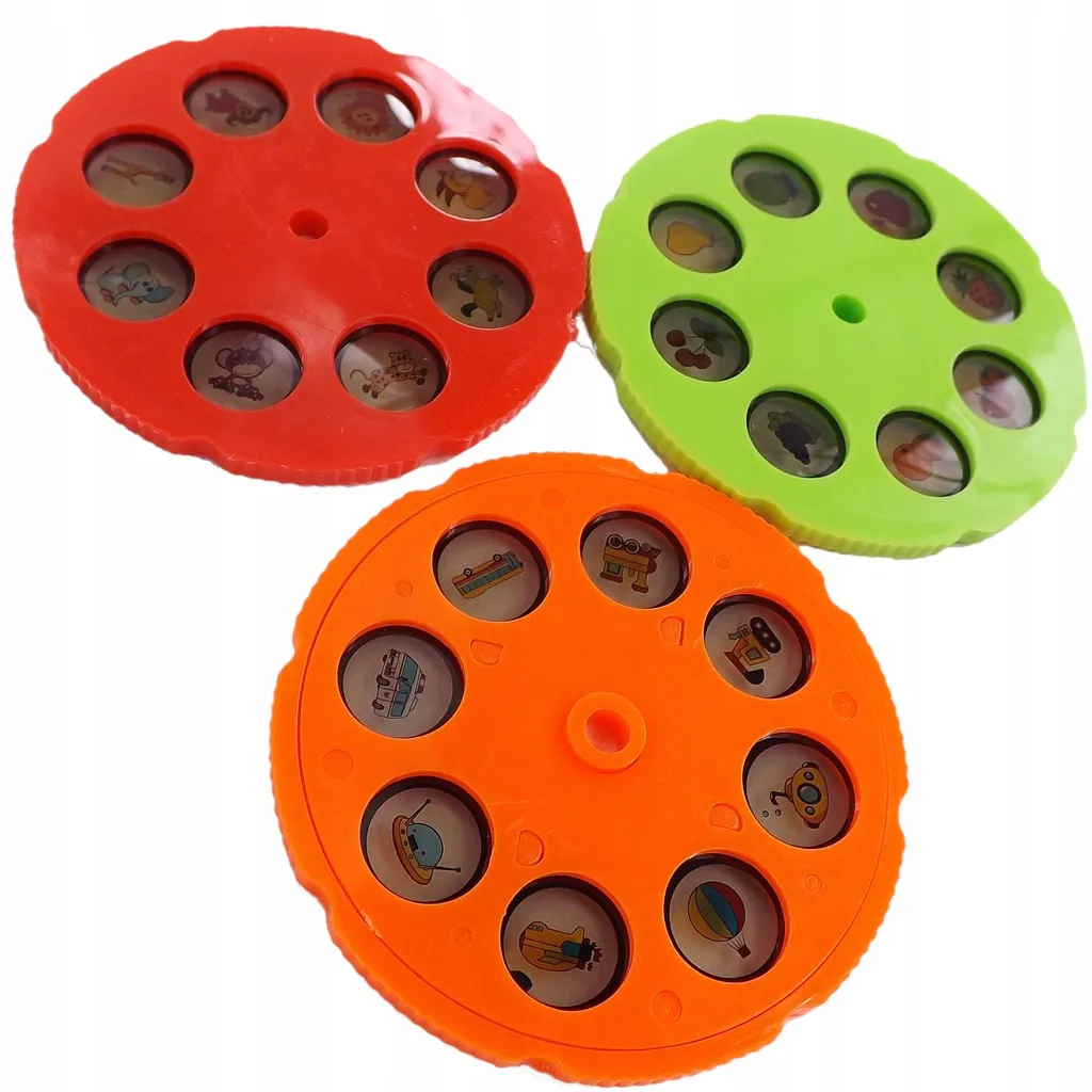 Drei austauschbare Scheiben (je 8 Bilder) projizieren Motive von Tieren, Fahrzeugen sowie Obst und Gemüse. Kinder zeichnen die Konturen nach und gewinnen schnell Sicherheit in der Hand.