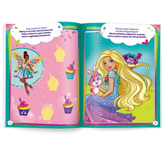 Treten Sie ein in die märchenhafte Welt von BARBIE Dreamtopia, in der jede Seite ein neues Abenteuer bringt. Kinder können eigene Geschichten erfinden, Szenen dekorieren und ihre Vorstellungskraft mit Hilfe von zwei Bögen glitzernder Aufkleber entfalten. Die Aufgaben sind so gestaltet, dass sie den Fähigkeiten von Kindern im Alter von 4–7 Jahren entsprechen – unterhaltsam, übersichtlich und motivierend.