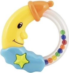 Die Rassel mit Mondmotiv ist ein tolles erstes Spielzeug für die Kleinsten. Sie hilft Kindern, Geräusche zu erkennen, fördert die Feinmotorik und die Hand-Auge-Koordination. Dank der kompakten Größe von 11 cm liegt sie bestens in kleinen Händchen und ist ideal für zuhause und unterwegs.