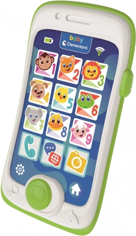 Das interaktive sprechende Touch-Smartphone von CLEMENTONI ist ein unterhaltsames und lehrreiches Spielzeug für Kinder von 12 bis 36 Monaten. Dank 12 Touch-Tasten lernen Kinder Tiere, Zahlen und Geräusche, während Melodien und Soundeffekte die auditive Wahrnehmung fördern. Drei bunte LED-Lichter und eine ansprechende Grafik halten die Aufmerksamkeit kleiner Entdecker und unterstützen den kognitiven Entwicklungsprozess, die Feinmotorik und die Nachahmung von Erwachsenen.