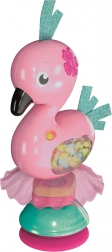 Der interaktive Flamingo wurde entwickelt, um die multisensorische Entwicklung der Kleinsten zu unterstützen. Beim Schütteln ertönen fröhliche Melodien und verschiedene Soundeffekte, die die auditive Wahrnehmung stimulieren. Der rasselnde Bauch und bunte Anhänger mit unterschiedlichen Oberflächen regen Kinder zum Entdecken an und fördern die Feinmotorik.