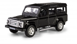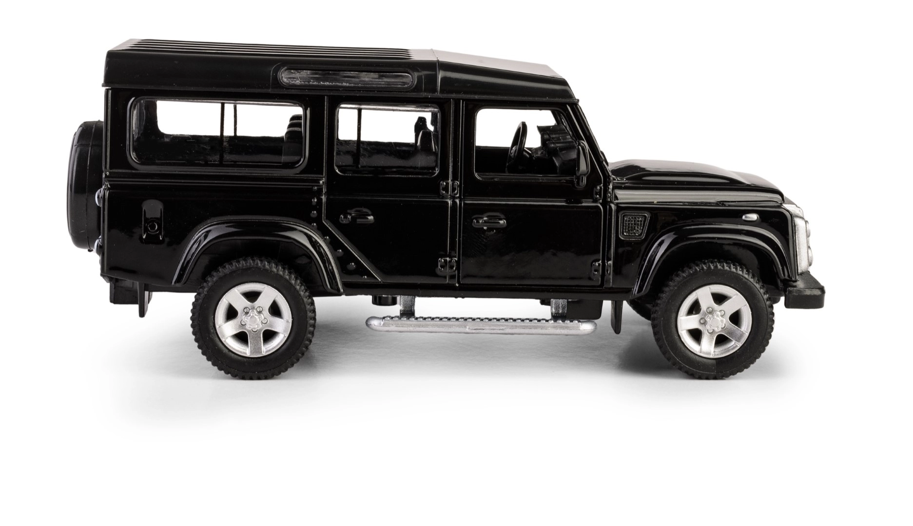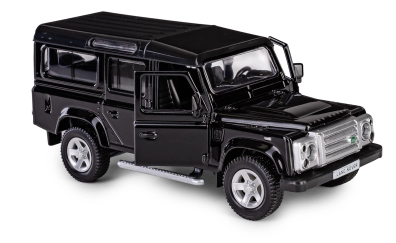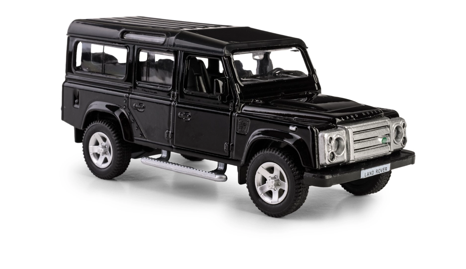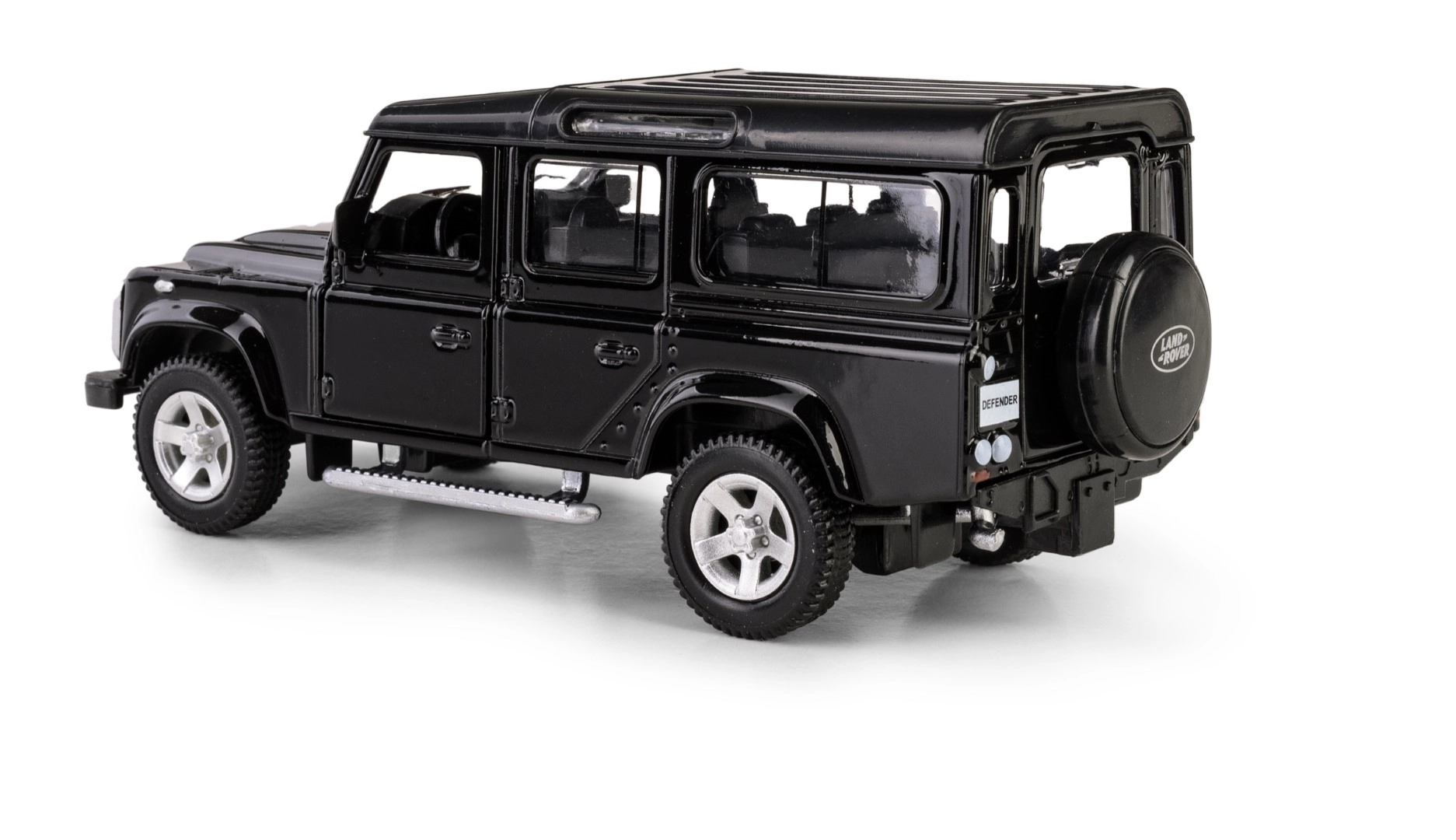 Entdecken Sie die detailreiche Replik des legendären Geländewagens LAND ROVER Defender 110 in elegantem Schwarz. Dieses Die-Cast-Modell im Maßstab 1:35 kombiniert Metallteile mit Kunststoffdetails, um charakteristische Linien, Kühlergrill, Felgen und die robuste Silhouette des Originals authentisch einzufangen. Öffnende Vordertüren ermöglichen den Blick in den sorgfältig ausgearbeiteten Innenraum.