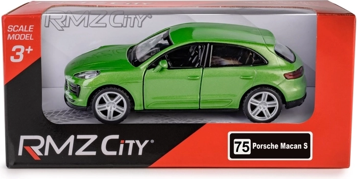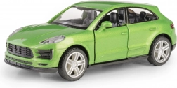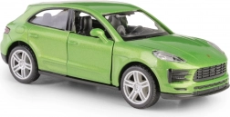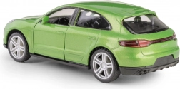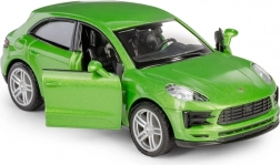 Genießen Sie die präzise gefertigte Replik des Porsche Macan S 2019, die das Design des echten Fahrzeugs originalgetreu widerspiegelt. Eine Metallkarosserie mit Kunststoffdetails und grünem Metallic-Lack verleihen dem Modell einen luxuriösen Look, während die zu öffnenden Vordertüren den detailreichen Innenraum offenbaren.
