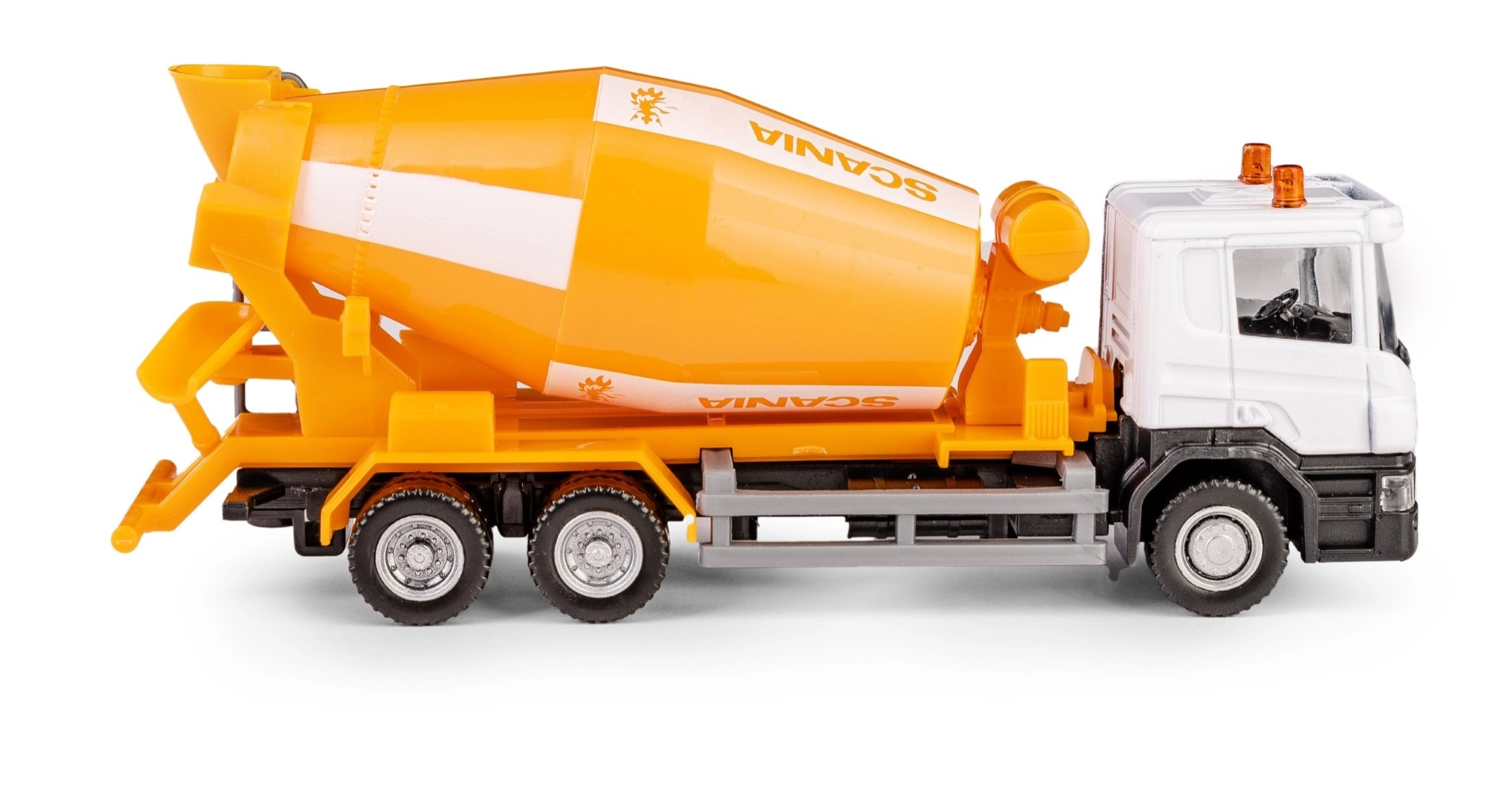 Genießen Sie das präzise ausgearbeitete Modell des SCANIA-Betonmischers im Maßstab 1:64, das durch realistische Details, eine drehbare Mischtrommel und hochwertige Verarbeitung überzeugt. Die Metallkabine verleiht dem Modell Stabilität, während Kunststoffteile – wie Mischer und Fahrgestell – für geringes Gewicht und sicheres Spielen sorgen.