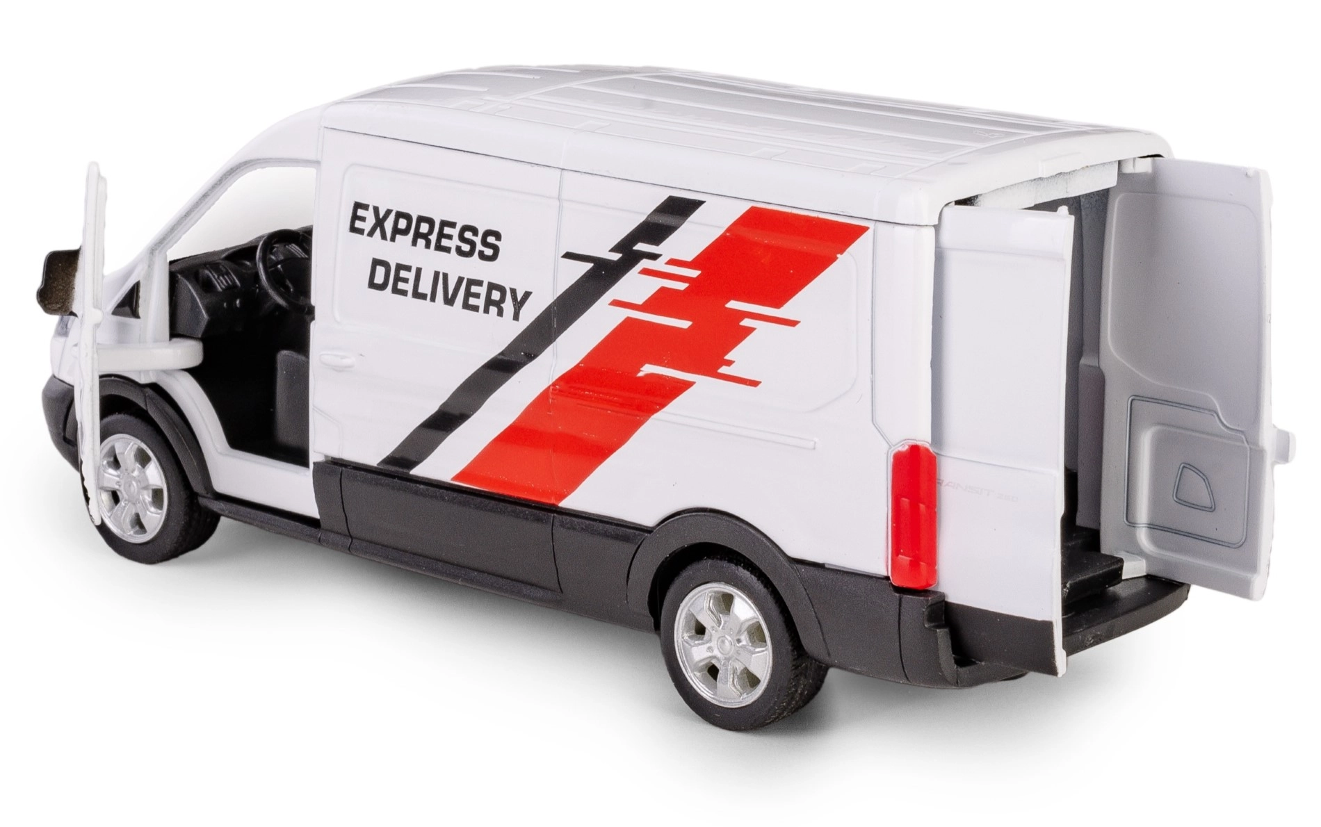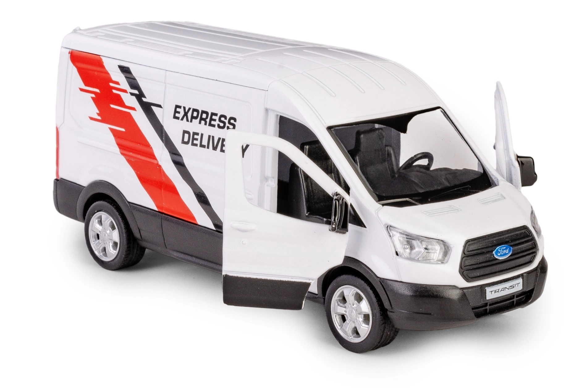 Getreue Proportionen des FORD TRANSIT, eine markante weiße Karosserie und Liefergrafik erfreuen Kinder und Sammler.