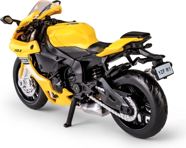 Diese originalgetreue Replik des legendären Supersportlers YAMAHA YZF‑R1 besteht aus hochwertigem Metall mit Kunststoffelementen und wirkt dadurch robust und zugleich detailreich. Den realistischen Eindruck verstärken die Gummireifen und die präzisen Proportionen im Maßstab 1:18.