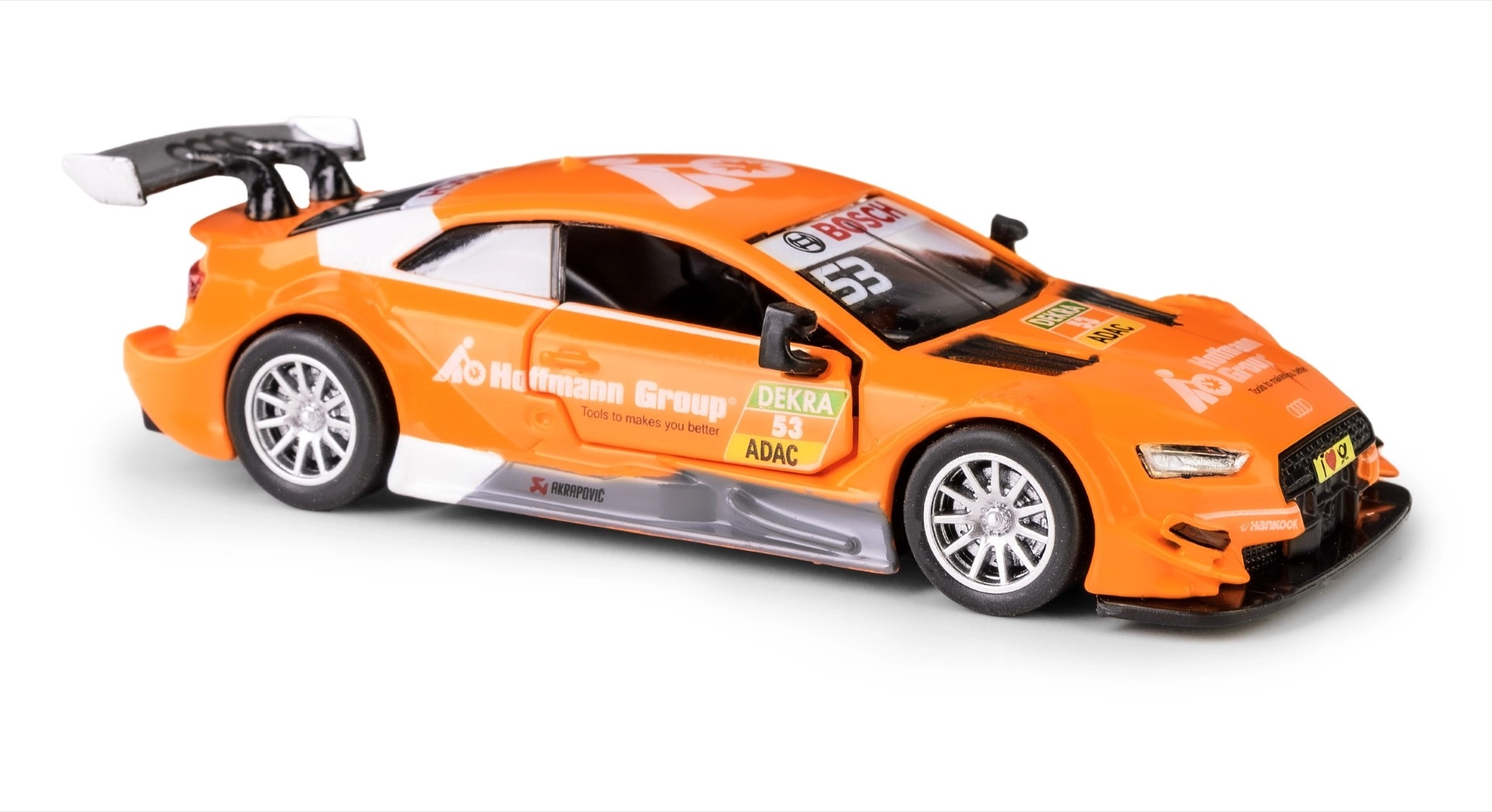 Genießen Sie eine detailreiche Replik des Rennsport-Spezials AUDI RS 5 DTM im kompakten Maßstab 1:43. Das Modell in leuchtendem Orange verbindet realistische Optik mit praktischen Funktionen, die Kinder wie Erwachsene erfreuen. Zu öffnende Türen geben den Blick auf das sorgfältig gestaltete Interieur frei, und Gummireifen sorgen für hervorragende Stabilität beim Fahren.