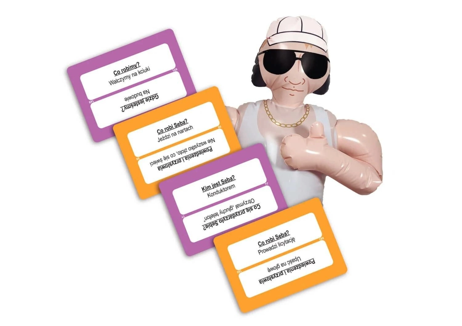 Das Spiel lässt sich außerdem mit dem beliebten „Kim jest Janusz?“ kombinieren, um eine Team-Challenge zwischen Team Seba und Team Janusz zu schaffen. So erhalten Sie noch mehr Karten, Abwechslung und unendlich viele lustige Situationen.