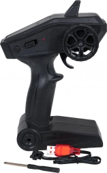 Dank Allradantrieb 4x4, hoher Bodenfreiheit und unabhängiger Federaufhängung klettert das Modell leicht über Hindernisse und beherrscht Stunts. Frontscheinwerfer und LED-Panel auf dem Dach verbessern die Sichtbarkeit und sorgen für einen attraktiven Look. Die praktische Stromversorgung über den 7,4-V-Akku (im Lieferumfang) schont Batterien, der Sender benötigt 4× AA (nicht enthalten).