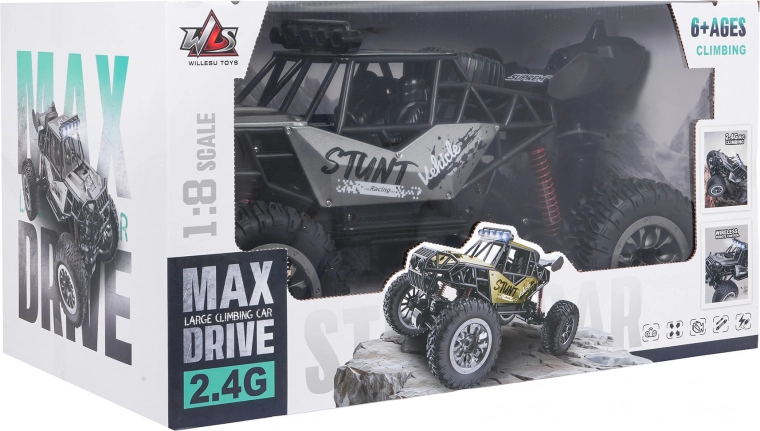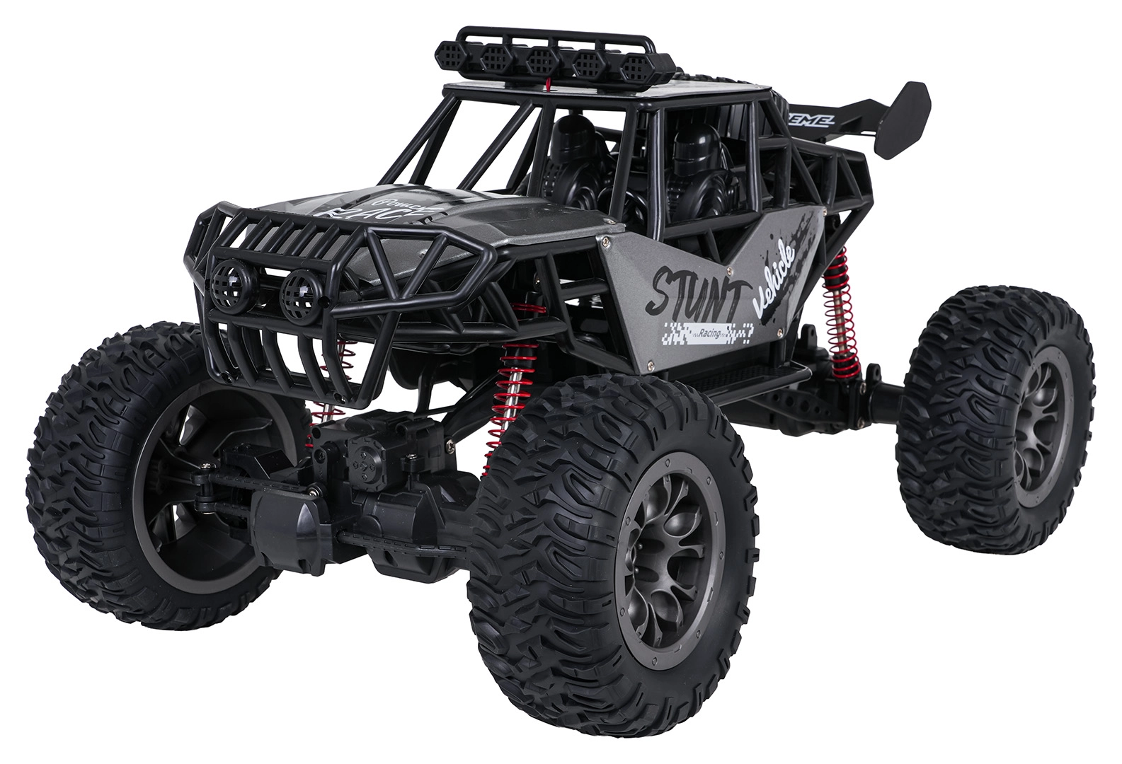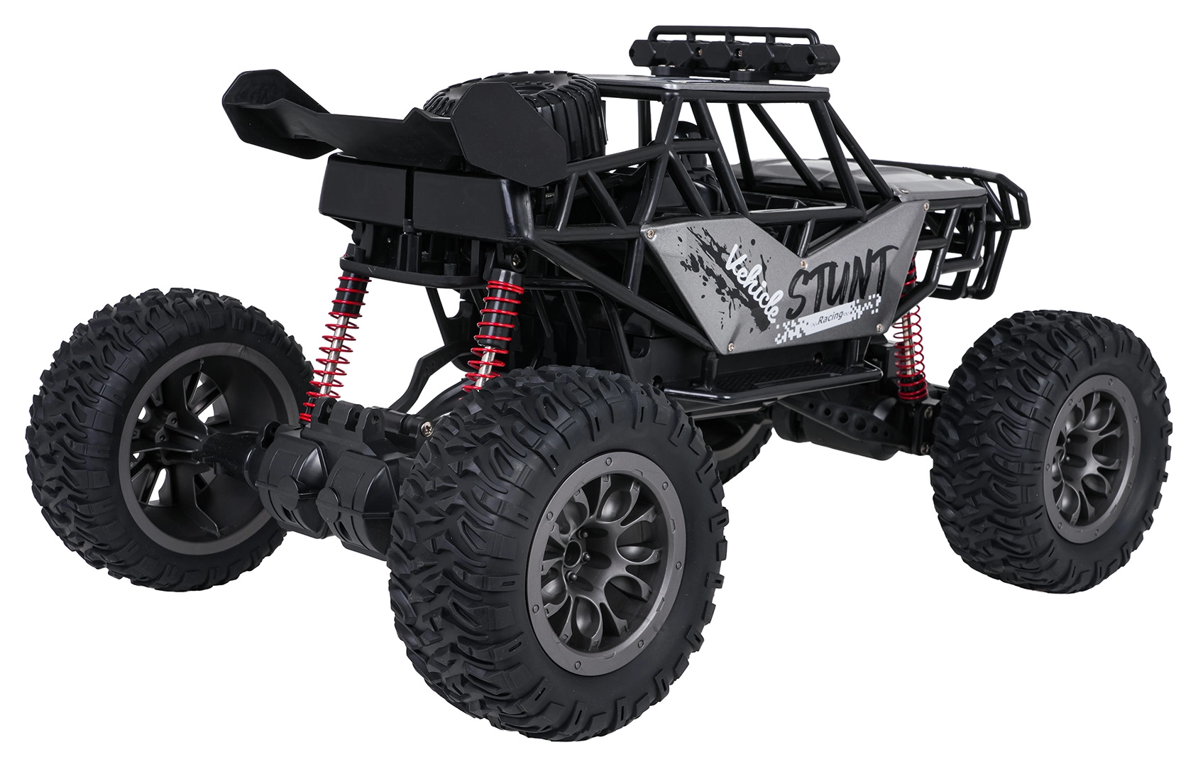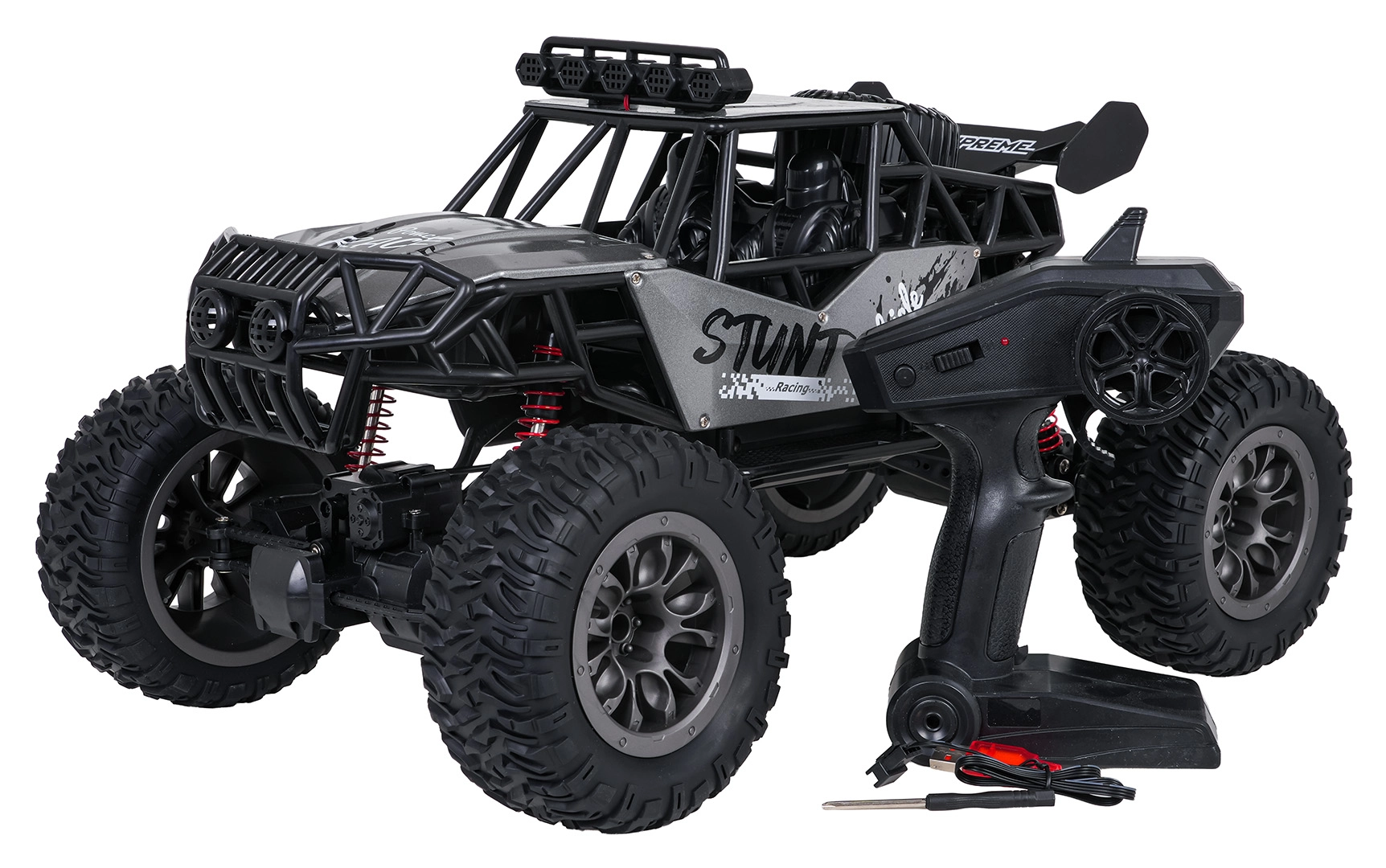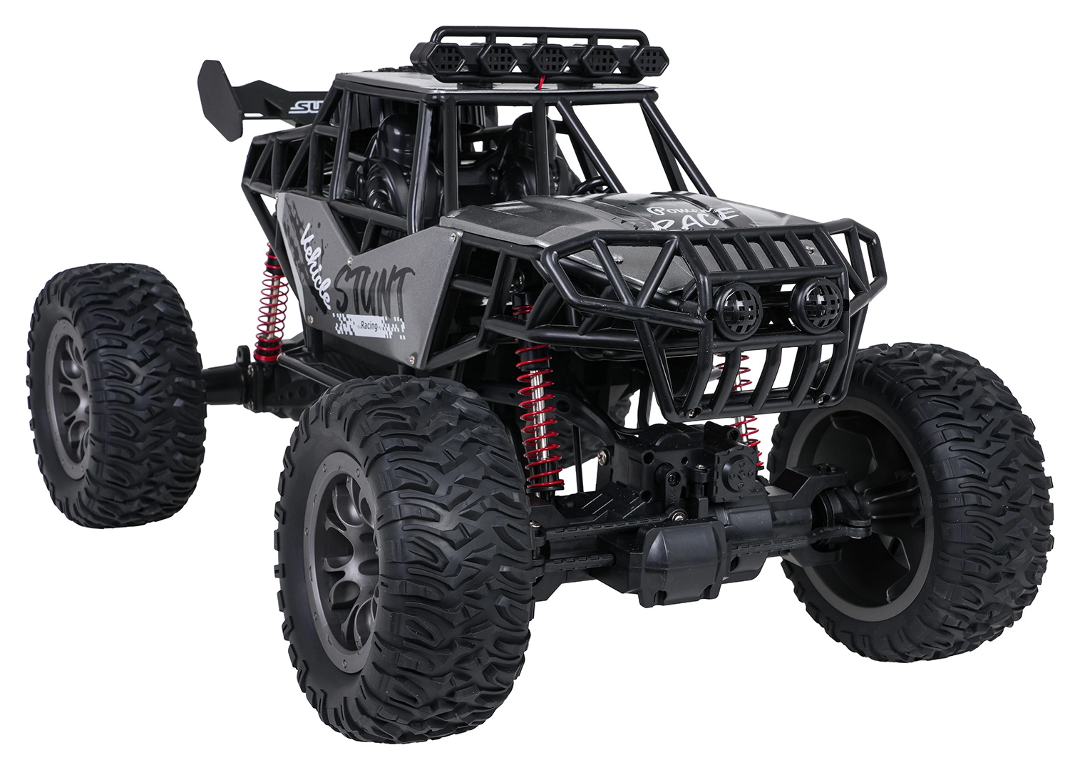 Erleben Sie actionreiches Offroad-Fahren mit dem RC-Crawler im Maßstab 1:8. Die Metallkarosserie und die Federfederung verleihen hohe Robustheit, während große, rutschfeste Räder mit tiefem Profil für hervorragende Traktion auf Schotter, Gras und Sand sorgen. Die 2,4-GHz-Fernsteuerung bietet sanfte, störungsfreie Lenkung und eine Reichweite von bis zu 50 Metern.