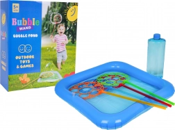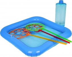 Mit diesem Set erstellen Kinder mühelos gigantische Seifenblasen. Gießen Sie die Lösung einfach in das aufblasbare Becken, tauchen Sie einen der Ringe ein und pusten Sie – für Lächeln und Freude ist gesorgt. Ideal für Familienfeste und Spiele mit Freunden an der frischen Luft.