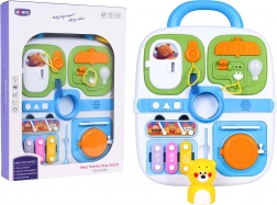 Der Koffer besteht aus sicheren, langlebigen Materialien in lebendigen Farben und lässt sich dank integriertem Griff leicht von Kindern tragen. Enthalten ist außerdem ein Mini-Xylophon (Metallophon) mit Schlägel, das Rhythmus und Hörwahrnehmung fördert. Eine tolle Lösung für das Spielen zu Hause und unterwegs.
