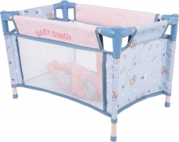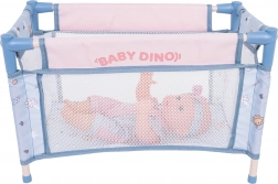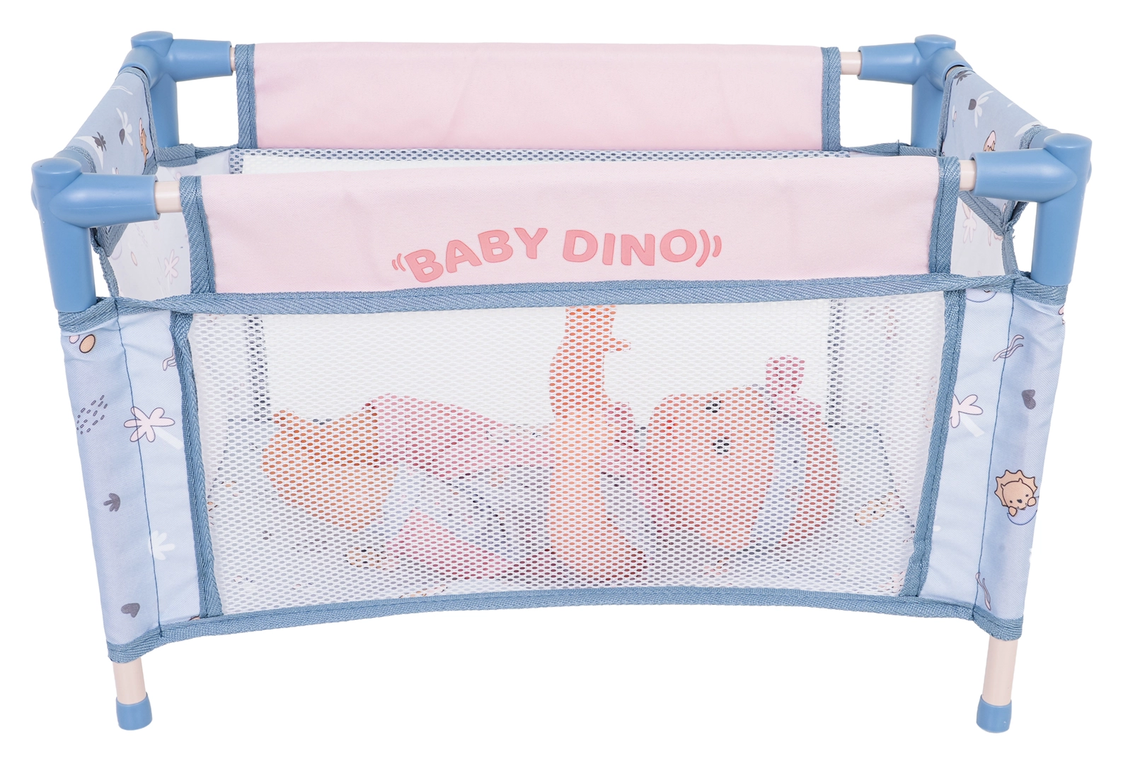 Praktischer Laufstall/Schlafplatz mit stabiler Konstruktion und Mesh-Seiten für bessere Sicht und Luftzirkulation. Passend zum BABY-DINO-Motiv.