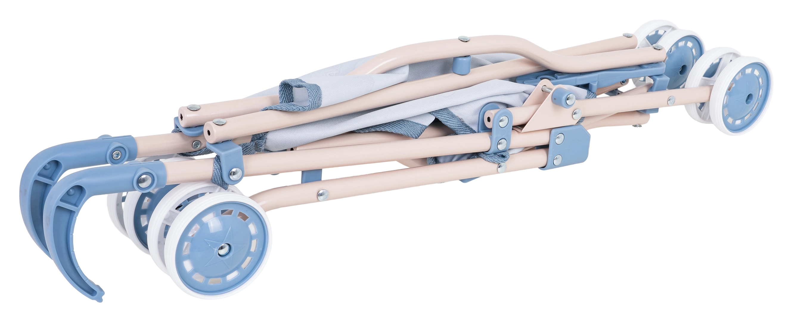 Leichter Kinderwagen mit Doppelrädern und Sicherheitsgurt, lässt sich leicht zusammenklappen und spart Platz. Perfekt zum Spielen zu Hause und unterwegs.
