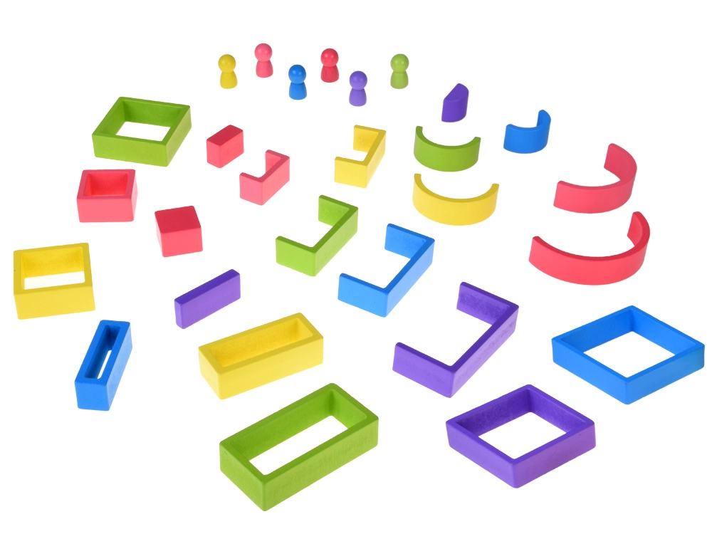 Bögen, Rahmen, Brücken und andere Formen lassen sich stapeln, ineinanderstecken und balancieren. Kinder trainieren die Feinmotorik, und das Lernen geschieht spielerisch und ganz natürlich.