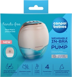 CANPOL babies Hands‑Free ist eine kabellose elektrische Milchpumpe für aktive Mamas. Dank der kompakten Bauweise passt sie in den BH, arbeitet leise (max. 50 dB) und bietet Bewegungsfreiheit zu Hause, bei der Arbeit und unterwegs. Drei Modi ahmen den natürlichen Saugrhythmus des Babys nach und in jedem Modus stehen 8 Intensitätsstufen bis zu 26 kPa für maximalen Komfort zur Verfügung.