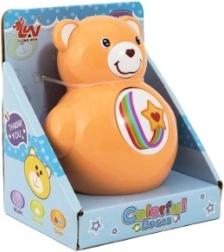 Der Kuschelbär wiegt sich dank seiner abgerundeten Basis natürlich, was die Aufmerksamkeit des Kindes auf sich zieht und seine Interaktivität fördert.