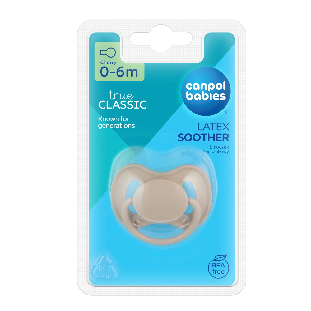 Der Canpol babies Schnuller NUDE besteht aus Naturkautschuk mit typisch leicht gelblicher, matter Optik. Die runde Spitze unterstützt den natürlichen Saugreflex und beruhigt Ihr Baby jederzeit am Tag. Der ergonomische Schild mit Belüftungsöffnungen sorgt für Luftzirkulation und hilft, Hautreizungen um den Mund vorzubeugen.