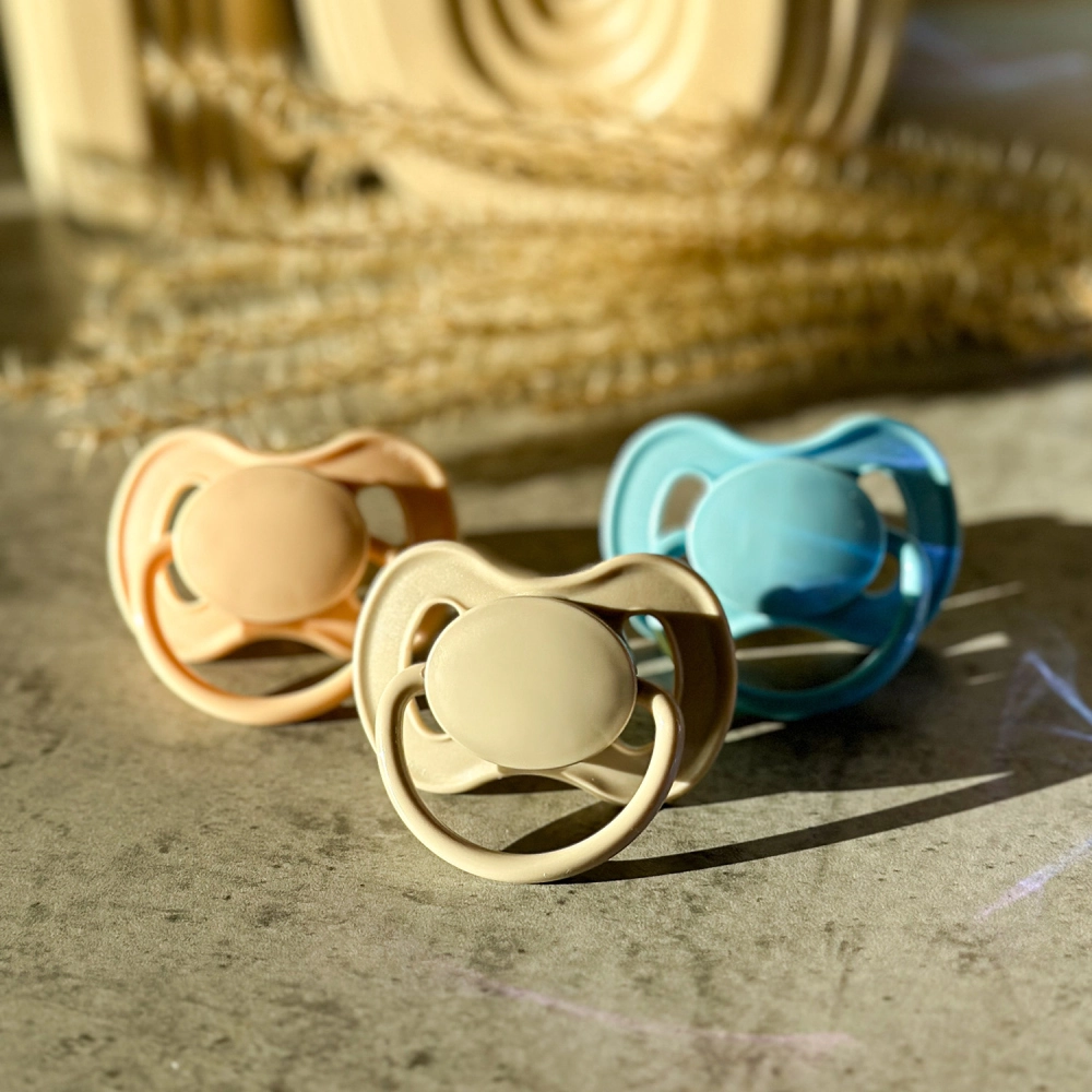 Der praktische Sicherheitsgriff erleichtert das Greifen sowie das Anbringen eines Clips oder einer Kette. Der Schnuller ist BPA-frei und in beliebten neutralen Farben erhältlich – Creme, Beige und Blau. Im Lieferumfang ist 1 Stück enthalten.