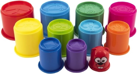Das Set aus bunten stapelbaren Bechern enthält 11 Teile, die zu einem hohen Turm zusammengestellt werden können. Die Becher sind in verschiedenen Farben gestaltet und können ineinander gesteckt werden, was eine großartige Möglichkeit bietet, die feinmotorischen Fähigkeiten Ihres Kindes zu entwickeln.