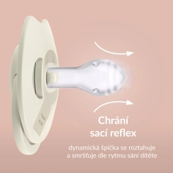 Die Spitze aus unterschiedlich dicken Silikonschichten dehnt sich natürlich aus und zieht sich zusammen – im Rhythmus des Saugens des Kindes. So unterstützt sie das Stillen und stört den Saugreflex nicht.