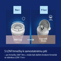 Der LOVI 360° Night & Day Becher ist ein idealer Schritt von der Flasche zum normalen Becher. Das Kind trinkt auf natürliche Weise wie aus einem Glas, jedoch ohne unnötiges Verschütten. Der weiche, abgedichtete Rand ermöglicht das Ansaugen der Flüssigkeit von jedem Punkt am Umfang und fördert so richtige Trinkgewohnheiten.