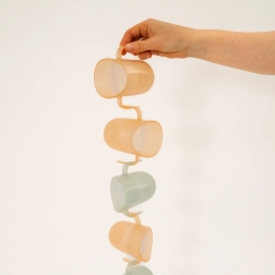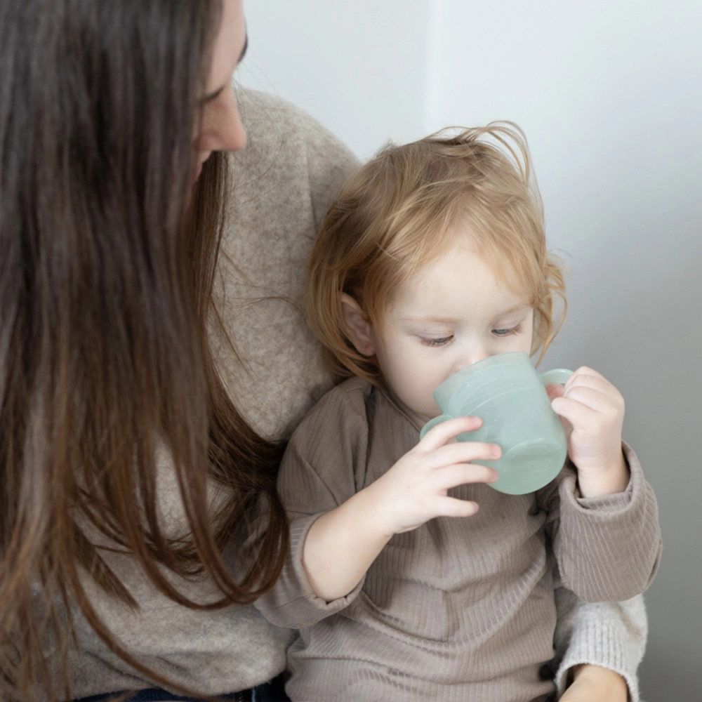 Die leichte Konstruktion, zwei breite Griffe und die kompakte Größe machen ihn zur perfekten Wahl für Anfänger. Sobald das Kind die richtige Technik beherrscht, entnehmen Sie den Einsatz, und der Becher wird zu einem offenen Becher mit 150 ml Volumen – ein Produkt, das wirklich mit dem Kind mitwächst.