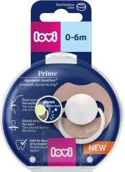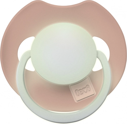 Das Zentrum und der Griff des LOVI Prime Schnullers leuchten im Dunkeln, sodass Sie ihn schnell finden, ohne das Licht einzuschalten und den Schlaf des Babys zu stören.