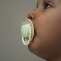 Das Mittelteil und der Griff des Schnullers leuchten sanft, sodass Sie ihn im Dunkeln schnell finden, ohne das Baby zu wecken.