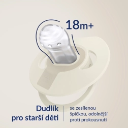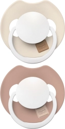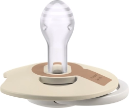 Das ergonomisch geformte Schild mit Aussparung entlastet den Nasenbereich, unterstützt freies Atmen und reduziert dank der Lüftungsöffnungen das Risiko von Hautirritationen. Der Schnuller ist sehr leicht, belastet den Biss nicht und verformt sich im Mund nicht dank hochwertigem Silikon. Leuchtende Elemente erleichtern das nächtliche Finden und die eleganten, zeitlosen Farben Ivory/Blush passen hervorragend zur Babyausstattung.