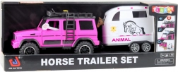 Entdecken Sie ein realistisches Spielset, das einen robusten Geländewagen und einen Pferdeanhänger kombiniert. Dank der detailreichen Ausführung, hochwertigem Kunststoff und der attraktiven pink-weißen Farbgebung wirkt das Spiel authentisch und fördert Kreativität und Feinmotorik.