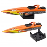 Das Boot besteht aus hochwertigem Kunststoff und besticht durch seinen sportlichen Look in intensiven Farben. Der drehbare Motorblock mit Steuerrad ermöglicht ein leichtes Wechseln der Richtung, sodass Kinder Feinmotorik, Koordination und Vorstellungskraft trainieren.