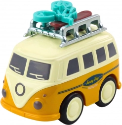 Entdecken Sie Fahrspaß auf vier Rädern mit dem niedlichen Camper, inspiriert von klassischen Campingbussen. Dank des Friktionsantriebs setzt sich das Fahrzeug nach leichtem Anschieben flott in Bewegung, und das bewegliche Dachgepäck verleiht der Fahrt Dynamik. Die kompakte Größe passt in den Rucksack, damit Ihr Kind Reiseabenteuer überall genießen kann.