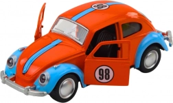 Die klassische Silhouette des Käfers mit Rennstreifen und der Nummer 98 wirkt wie eine Mini-Replik eines Rennwagens – ideal zum Spielen und Ausstellen.
