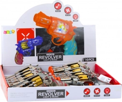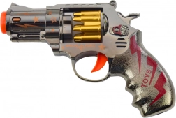 Suchen Sie ein Spielzeug für ein Kind, das actionreichen Spaß und Rollen wie Polizist, Cowboy oder Superheld liebt? Dieser Kinderevolver bietet ein detailgetreues Design mit glänzenden Elementen und farbigen Akzenten, die sofort ins Auge fallen. Beim Betätigen des Abzugs werden effektvolle Lichter und Geräusche aktiviert, die die Spielatmosphäre verstärken.