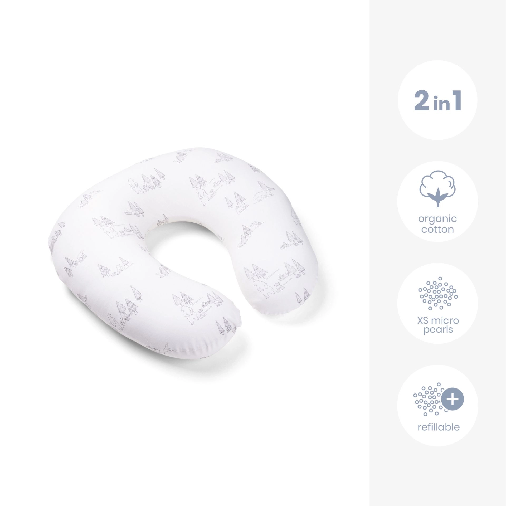 Dank der Kombination aus weichem Bezug mit Elastananteil und der leichten Füllung aus Mikropolystyrolkügelchen passt sich das Kissen leicht dem Körper und den Bedürfnissen des Kindes an. Der Bezug ist bei 30 °C waschbar, ebenso das Innenkissen (empfohlen im Wäschesack), sodass die Pflege einfach und hygienisch ist.