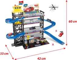Ordne deinen Fuhrpark in einer übersichtlichen vierstöckigen Garage mit Helipad! Enthalten sind 4 Etagen, ein Helikopter und 3 Metallautos mit einer Länge von ca. 7–8 cm. Die Garage misst nach dem Aufbau 42 × 60 × 33 cm und ist geeignet für Kinder ab 4 Jahren. Eine Auswahl bestimmter Varianten ist nicht möglich. Hinweis: Das Produkt ist in einer Ersatzverpackung verpackt.