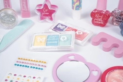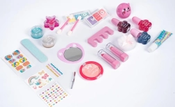 Das Set fördert Fantasie und Feinmotorik. Kinder können in einem bunten, kinderfreundlichen Design sicher erstes Schminken und Maniküre ausprobieren.