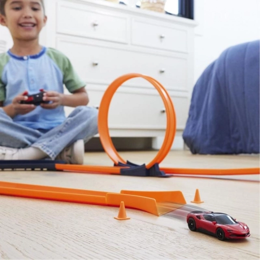 Das ferngesteuerte Hot Wheels RC Ferrari SF90 Stradale Assetto Fiorano überzeugt mit realistischer Ausführung und hervorragenden Fahreigenschaften im kompakten 1:64-Maßstab. Ideal sowohl für freie Fahrten zu Hause als auch für actionreiche Stunts auf Hot-Wheels-Bahnen.