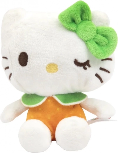Niedliches Hello Kitty Plüschtier mit einer Höhe von 12 cm, Orangenmotiv und zartem Orangenduft. Hergestellt aus außergewöhnlich weichem Plüsch, mit sensorischen Kügelchen im Bäuchlein und einem zwinkernden Auge für einen verspielten Look. Sicher ab der Geburt – ideal zum Kuscheln, Dekorieren und Sammeln.